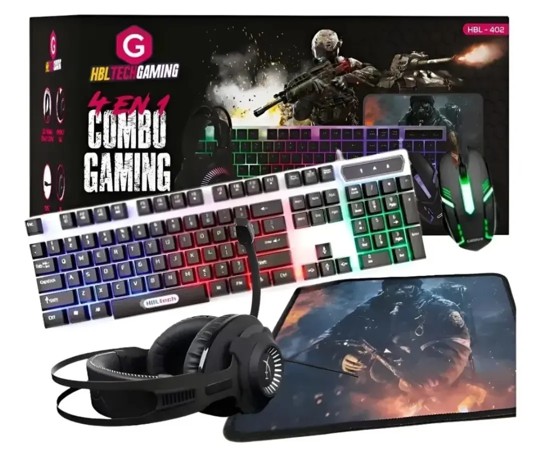 Combo Gaming 4 en 1 RGB – Kit completo para jugadores (Teclado + Mouse + Auriculares + Mousepad)