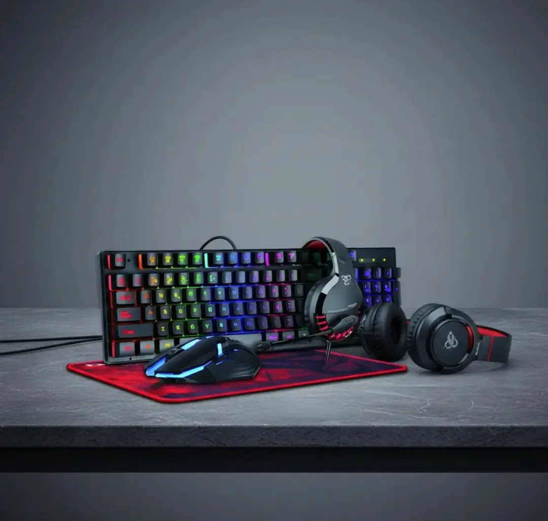 Mejorá tu experiencia de juego con este combo gamer 4 en 1, ideal para gamers que buscan rendimiento, estética RGB y comodidad en un solo paquete listo para usar.